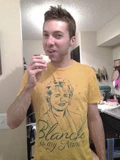 Happy, happy boyfriend (who, by the way, is totally rocking his "Blanche is my Nana" t-shirt)!