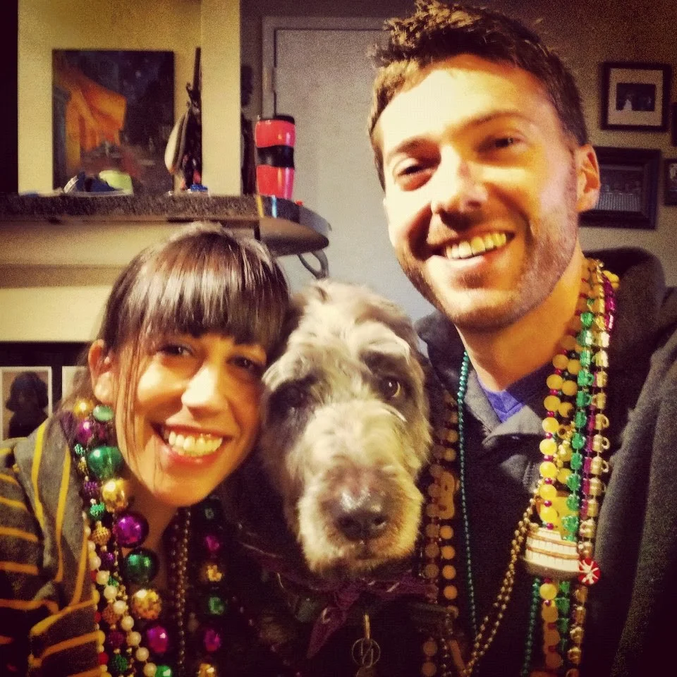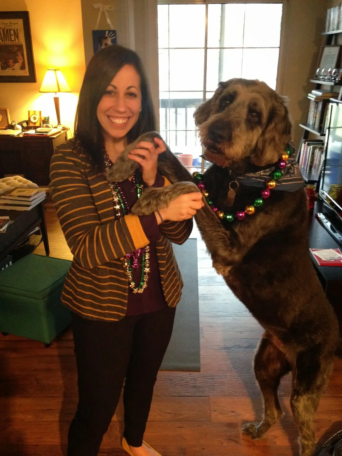 The past few years, Justin and I have celebrated by putting on beads, wearing green, yellow and purple, and drinking Abita beer. Even Bo wore beads!