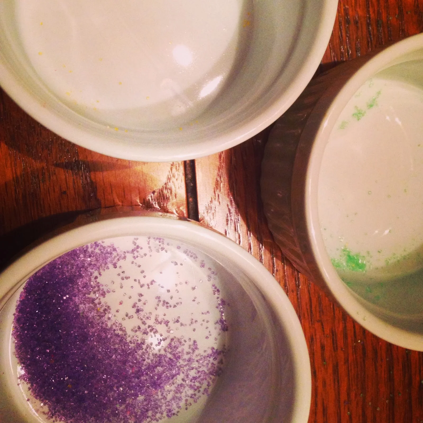 I have attempted king cake, and it turned out completely delicious. And completely face down on the floor. That definitely didn't stop me and Justin from dipping the non-floor touching parts in the leftover bourbon icing. Needless to say, it was high time I made another, and was far more careful in moving it from the cookie sheet to the cooling rack. Success!