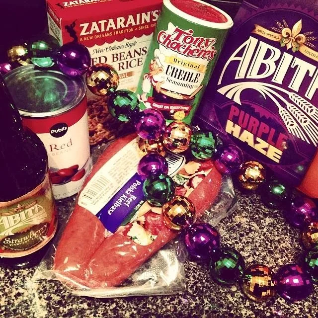 But we all know it's just not the same. This year, I decided that we were going to do it right. We were invited to a Mardi Gras party tonight, so we decided to make red beans and rice and a king cake.